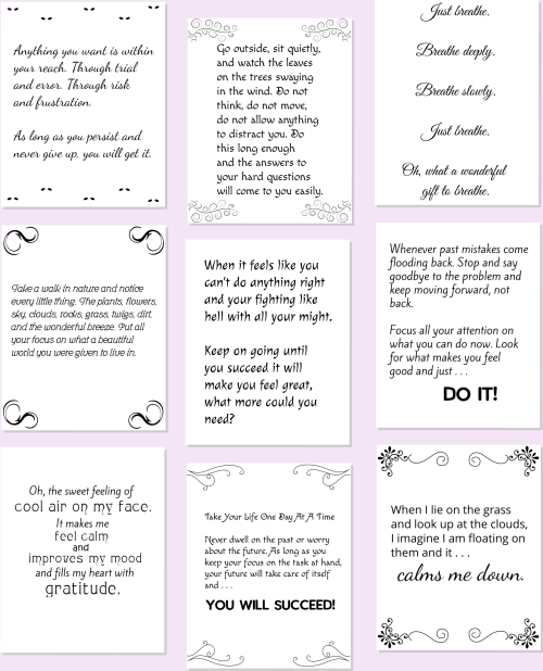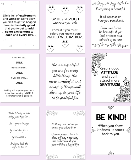 or designer craft paper. Print up cards to take with you to keep a positive attitude all day.